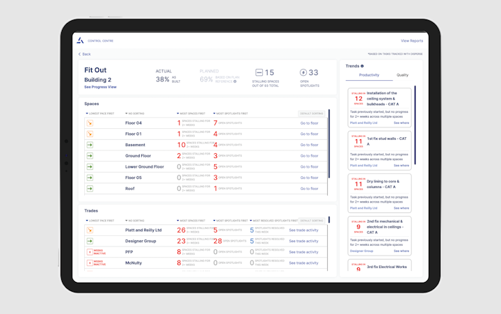 Disperse is a productivity platform for the construction industry. It emphasises data visualisation, making on-site activities easy to understand, prioritise, and act upon. Using site scanning and visual analytics, Disperse provides ready-to-use solutions that require minimal client input, promoting lean construction processes. In this initiative, we introduced Weekly Pace as a feature of "Impulse", a visual progress tracking and issue signalling tool. Weekly Pace aims to dynamically boost productivity by providing insights into weekly events on the site. It answers questions like: What was completed this week? Is an activity blocked? If so, for how long? Is work picking up or slowing down?